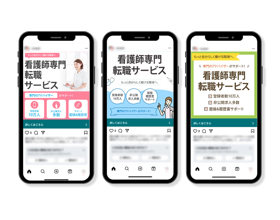 中でも、前職である看護師としての経験を活かし、医療・福祉分野に特化したデザイン制作を得意としています。